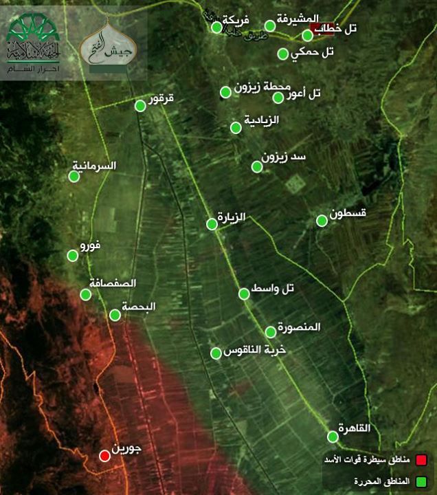 أفادت مصادر ميدانية بتمكن جيش الفتح من تحرير "صوامع المنصورة- المنصورة- تل واسط-الزيارة- خربة الناقوس - الزيارة - حاجز التنمية " في سهل الغاب بريف حماه , ليصبح الثوار على مشارف معسكر جورين أكبر معسكرات النظام في سهل الغاب , مما أدى لهروب جماعي لمليشيات النظام من المنطقة .