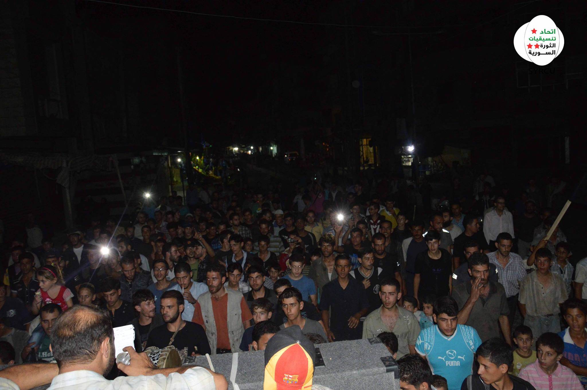 خرجت مساء أمس الأحد مظاهرة حاشدة في مدينة كفربطنا بمشاركة أهالي من جسرين أكدت على استمرار الحراك السلمي حتى تحقيق مطالب المتظاهرين التي خرجوا من أجلها منذ خمس سنوات وطالبوا فيها بإسقاط النظام وإسقاط تجار الحروب , كما طالبوا قادة الفصائل في الغوطة الشرقية المحاصرة بتحريك الجبهات لفك الحصار ونصرة الزبداني التي تعاني من قصف بشكل يومي ومحاولات متكررة لاقتحامها من قبل مليشيا حزب الله الارهابية .