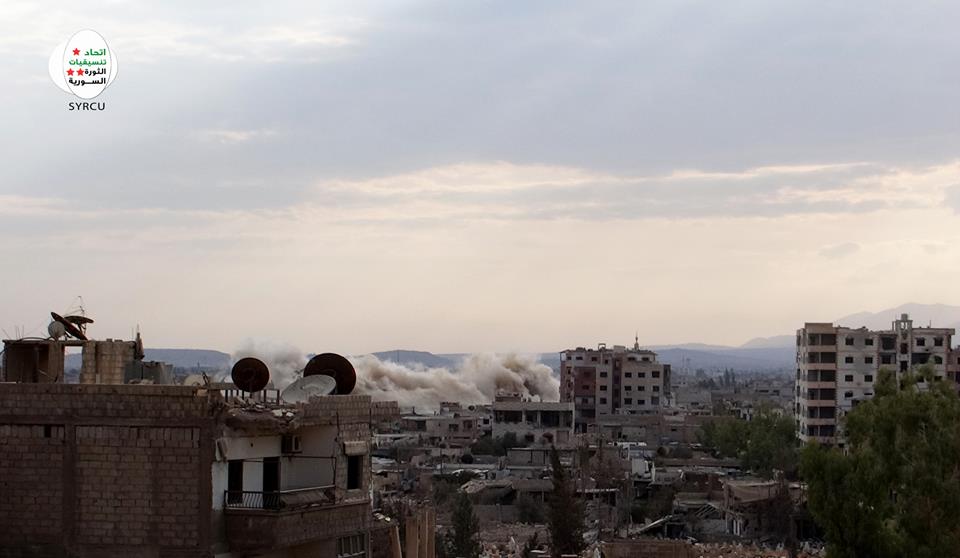 أحياء داريا تستهدف بـ 50 برميلاً متفجراً في مشاهد مروعة