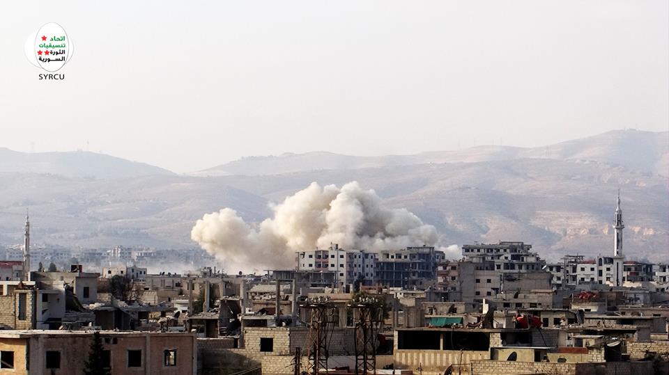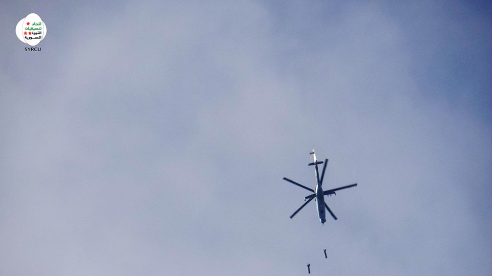 حيث شنت الطائرات المروحية عشرات الغارات بالبراميل المتفجرة ووصلت الحصيلة حتى اللحظة الى 62 برميلاً بالاضافة الى 12 صاروخ أرض_أرض وأكثر من 130 قذيفة مدفعية وصاروخية وإسطوانة متفجرة استهدفت في معظمه المنطقة الغربية و الغربية الشمالية وبعضها استهدف وسط المدينة.