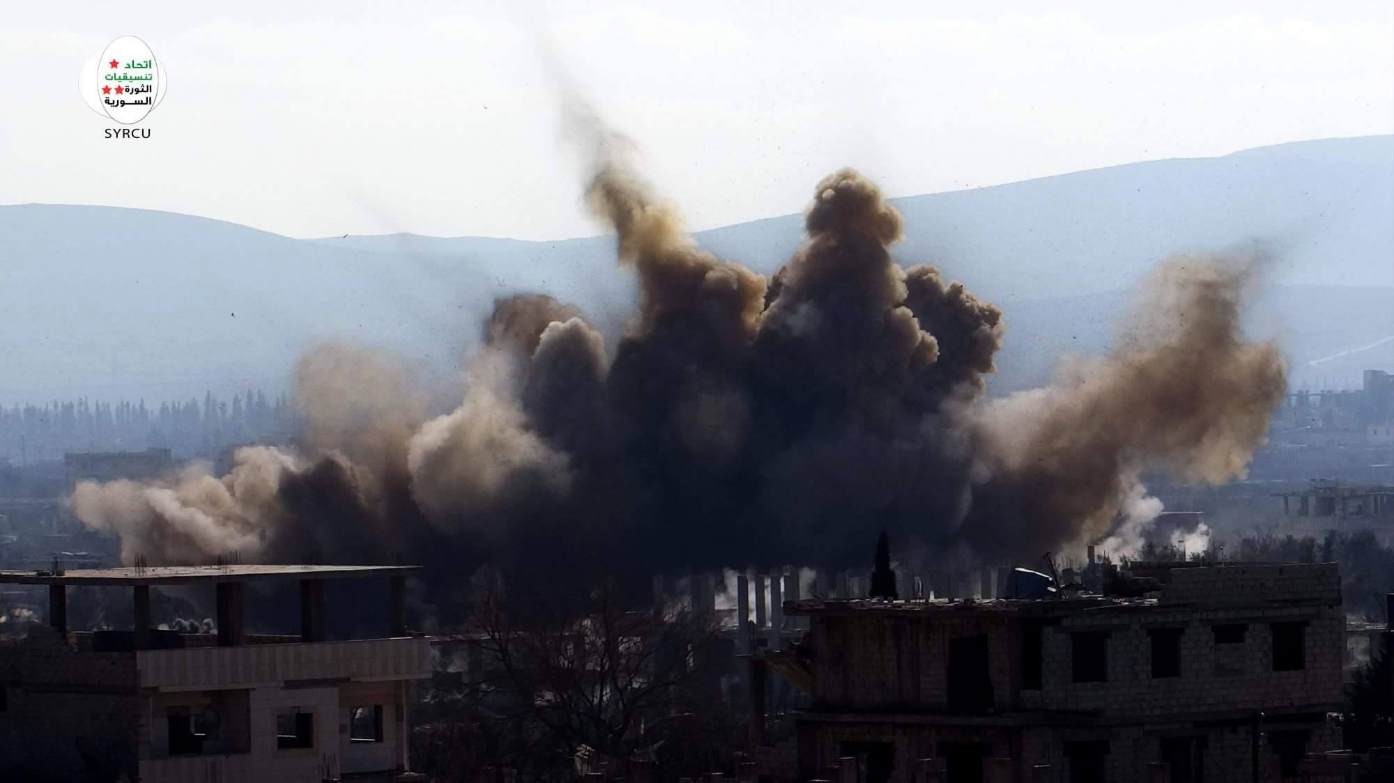 وذكر " أبو الزين " أن معدل القصف اليومي للمدينة بالبراميل المتفجرة من الطيران المروحي الأسدي ما يقارب " ٥٠" برميل يومياً ، أدت تلك الهجمات المروحية بالبراميل المتفجرة إلى إحداث دمار هائل في الممتلكات العامة والبنى التحتية للمدينة ، وسقوط عشرات الشهداء ومئات الجرحى.