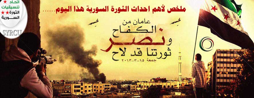 ملخص لأهم احداث الثورة السورية هذا اليوم 15-3-2013