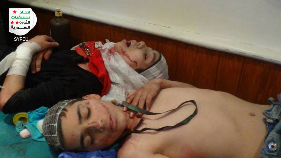 الصور تظهر وحشية ما يتعرضون له أطفال سوريا يوميا  حيث التقطت  أثناء أخلاء الجرحى من المدرسة .