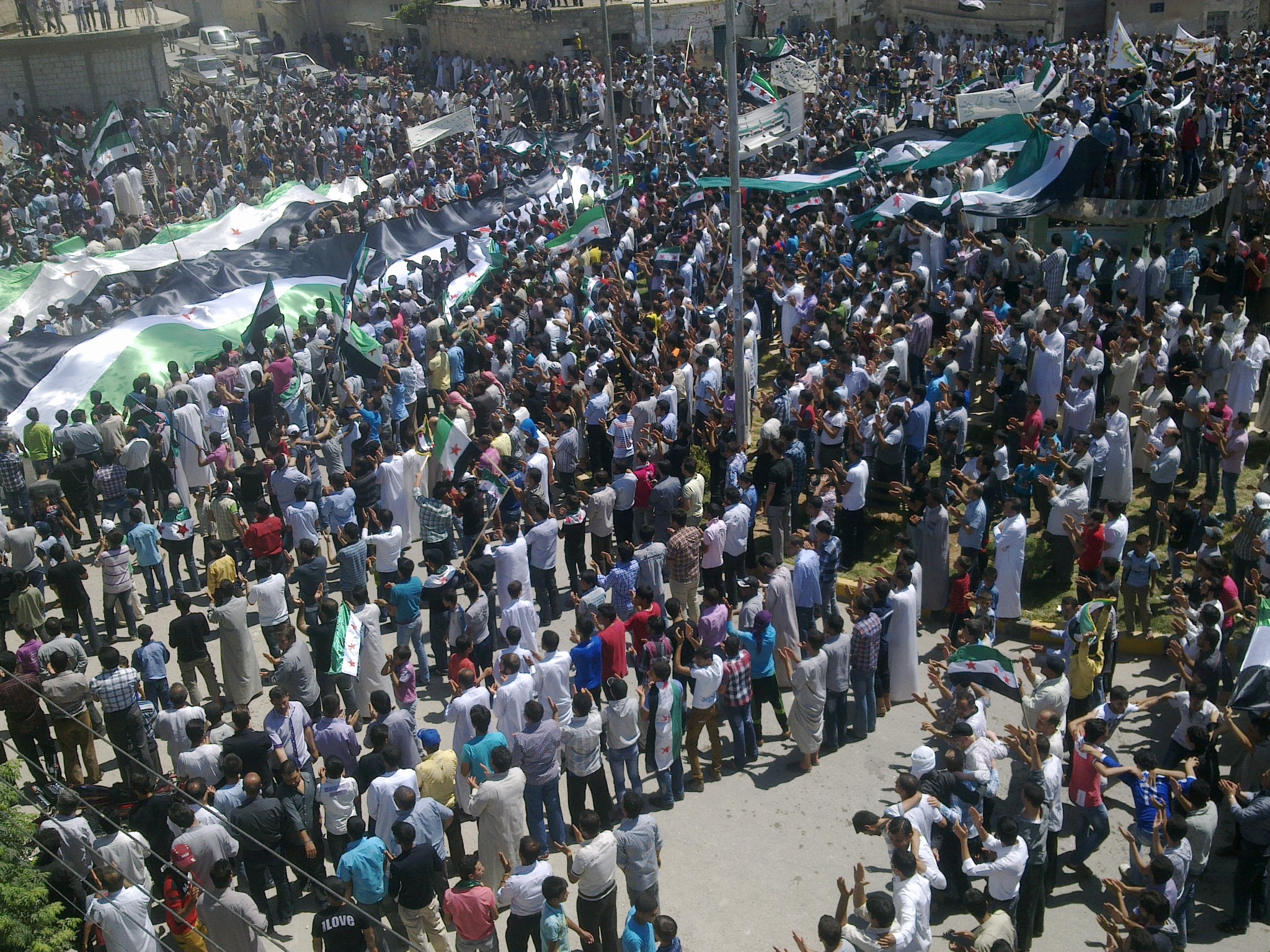 من جهة ثانية تواصل الحراك السلمي في المحافظة ,ممثلا بالمظاهرات حيث خرجت عدة مظاهرات في العديد من مدن وبلدات المحافظة ،في جمعة اطلق عليها اسم "ريف دمشق اصابع النصر فوق القصر" فرغم القصف والحصار ومواصلة سياسة التضييق على المدنيين خرجت مظاهرات في أحياء درعا البلد والقصور وطريق السد في مدينة درعا ومدن وبلدات معربة ونصيب والحراك وخربة غزالة وانخل،هتف فيها المتظاهرين للجيش الحر الذي يدافع بما يملكه من سلاح خفيف ومتواضع عن المدنيين العزل،كما هتفت المظاهرات للشهداء الذين ضحوا بحياتهم من اجل حرية الاخرين، ،وطالبوا بتسليح الجيش الحر بالسلاح النوعي لتمكينه من الوقوف بوجه عصابات الاسد المجرمة.
