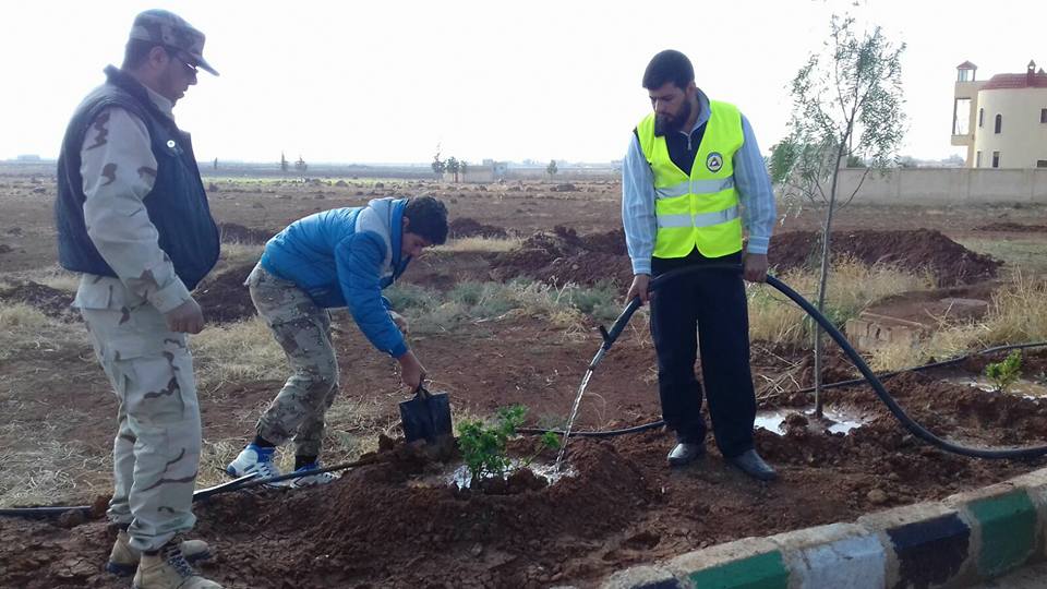 حملة تشجير لمدينة بصرى الشام بـ 5000 شجرة